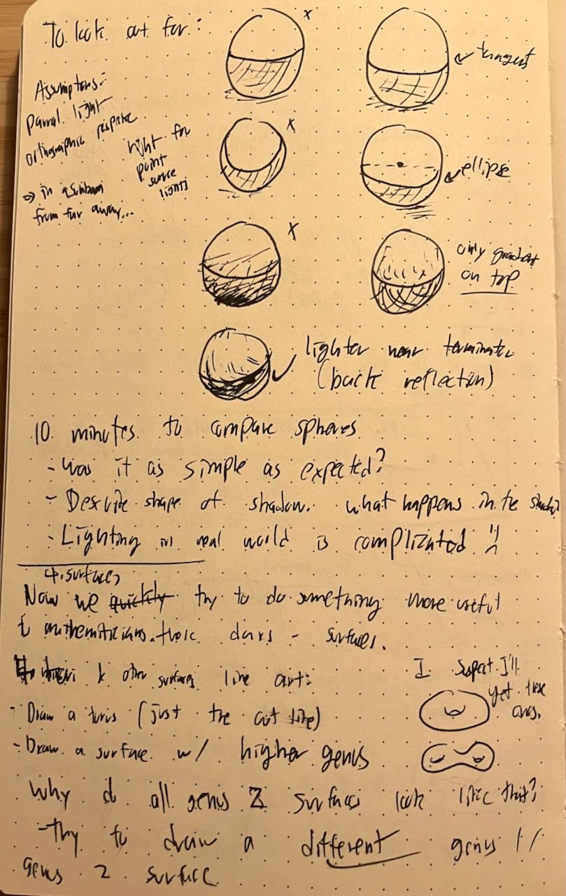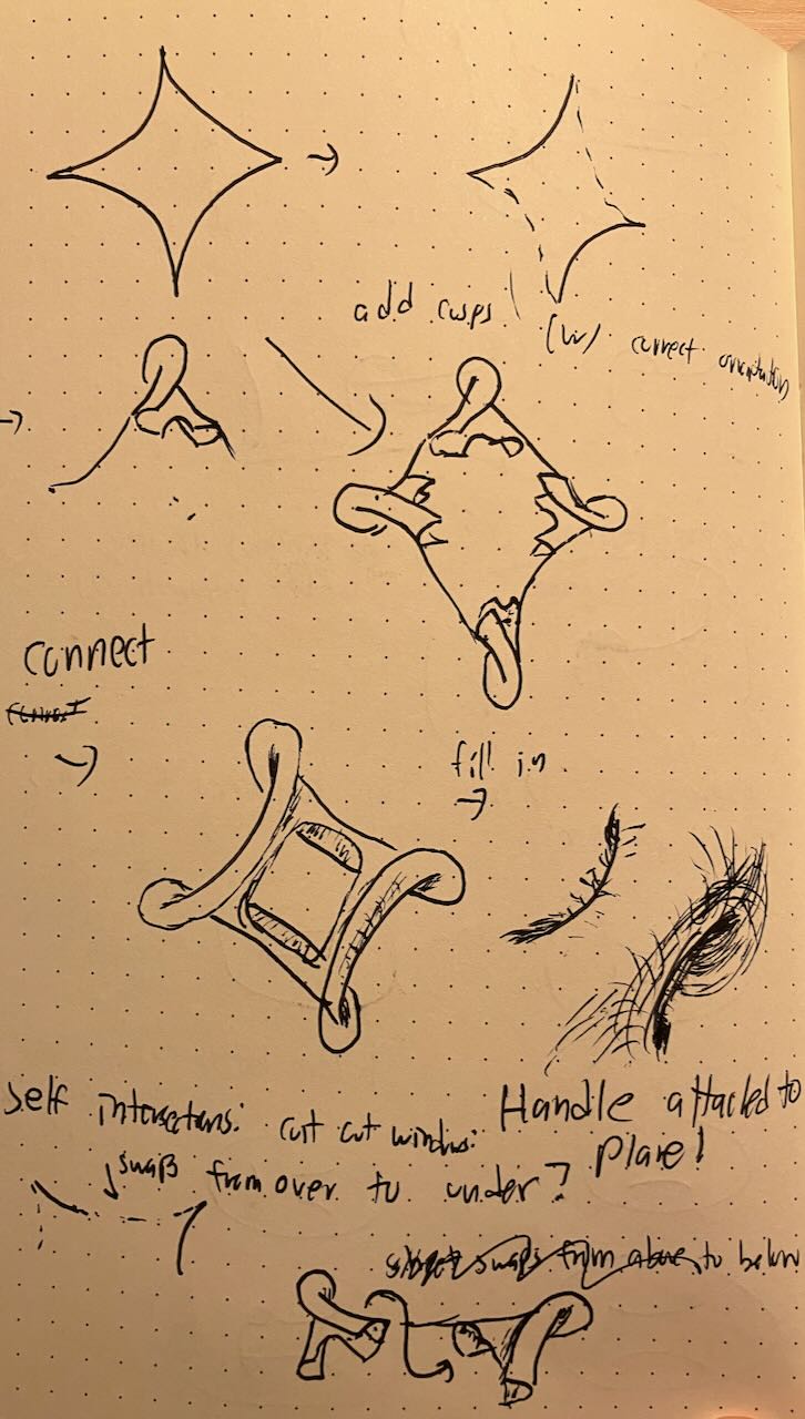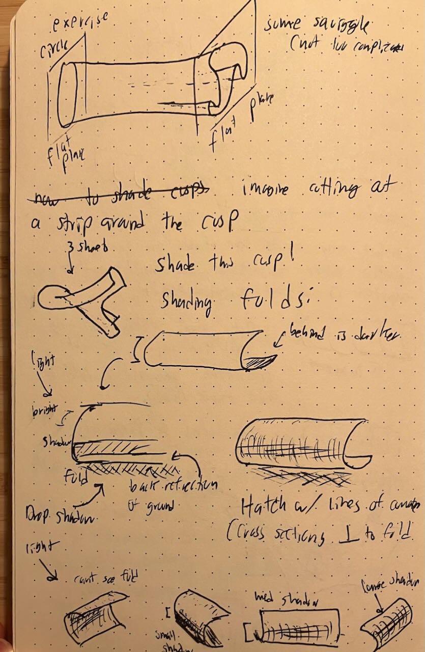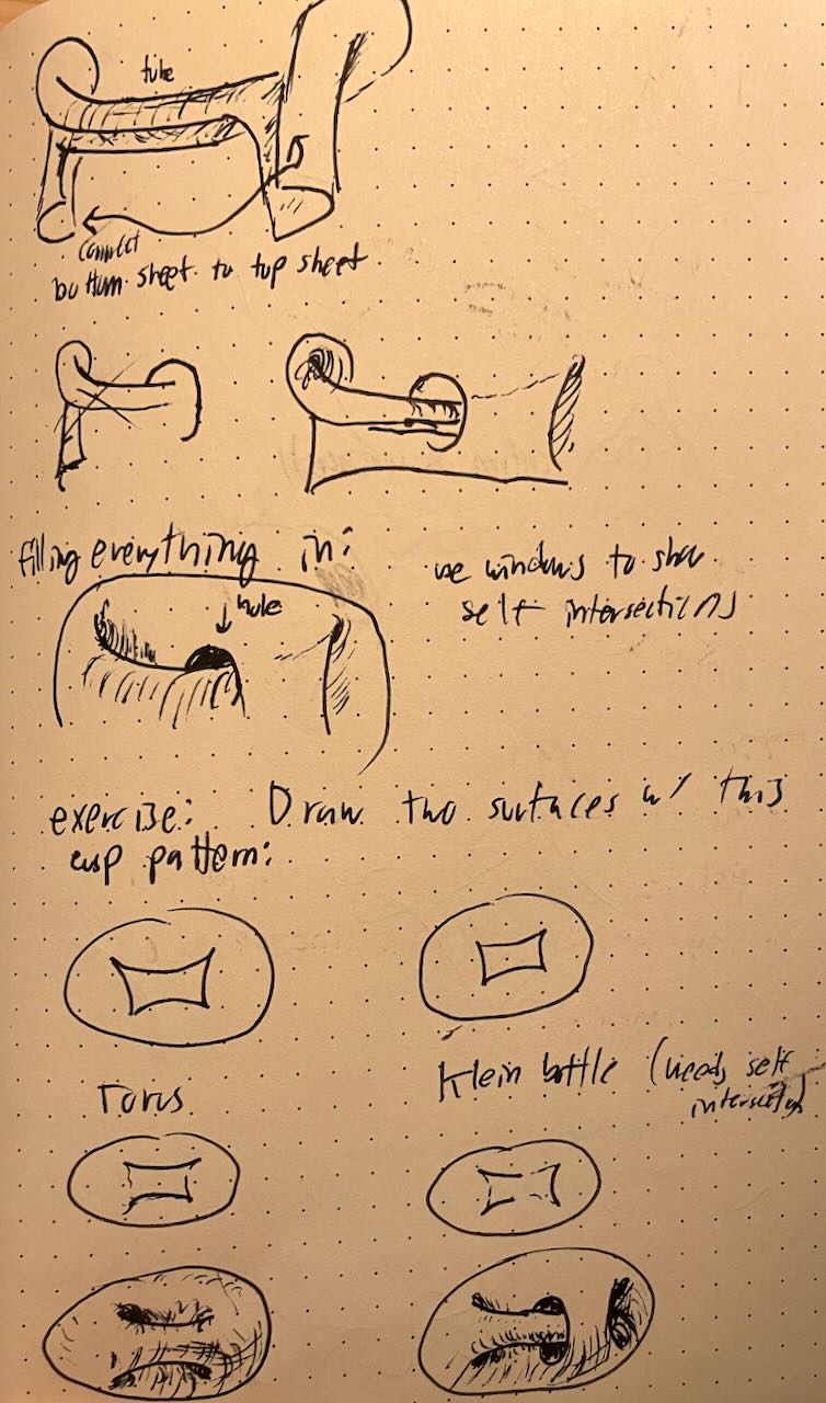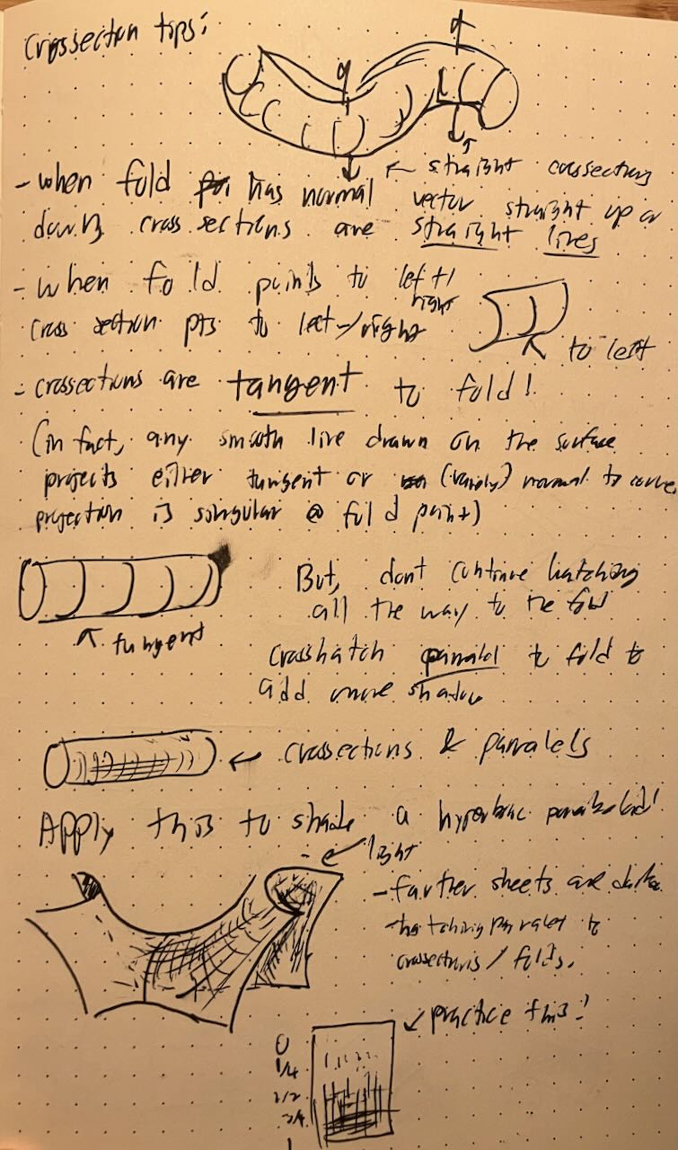 For the number theory conference, I ran a workshop on mathematical drawing. I introduced cusps and folds, and taught people about crosshatching. Afterwards, we drew topological critters.